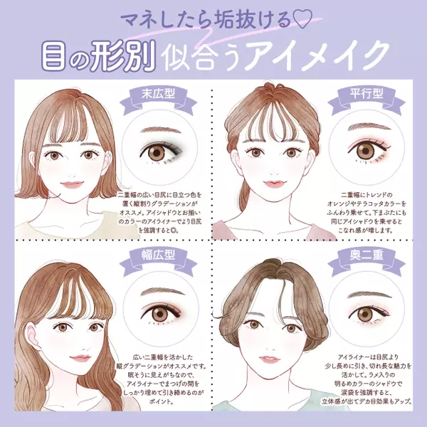 可愛く見えるメイクはこんなに違う 4つの目のカタチ別 おすすめ 垢抜けアイメイク Michill ミチル